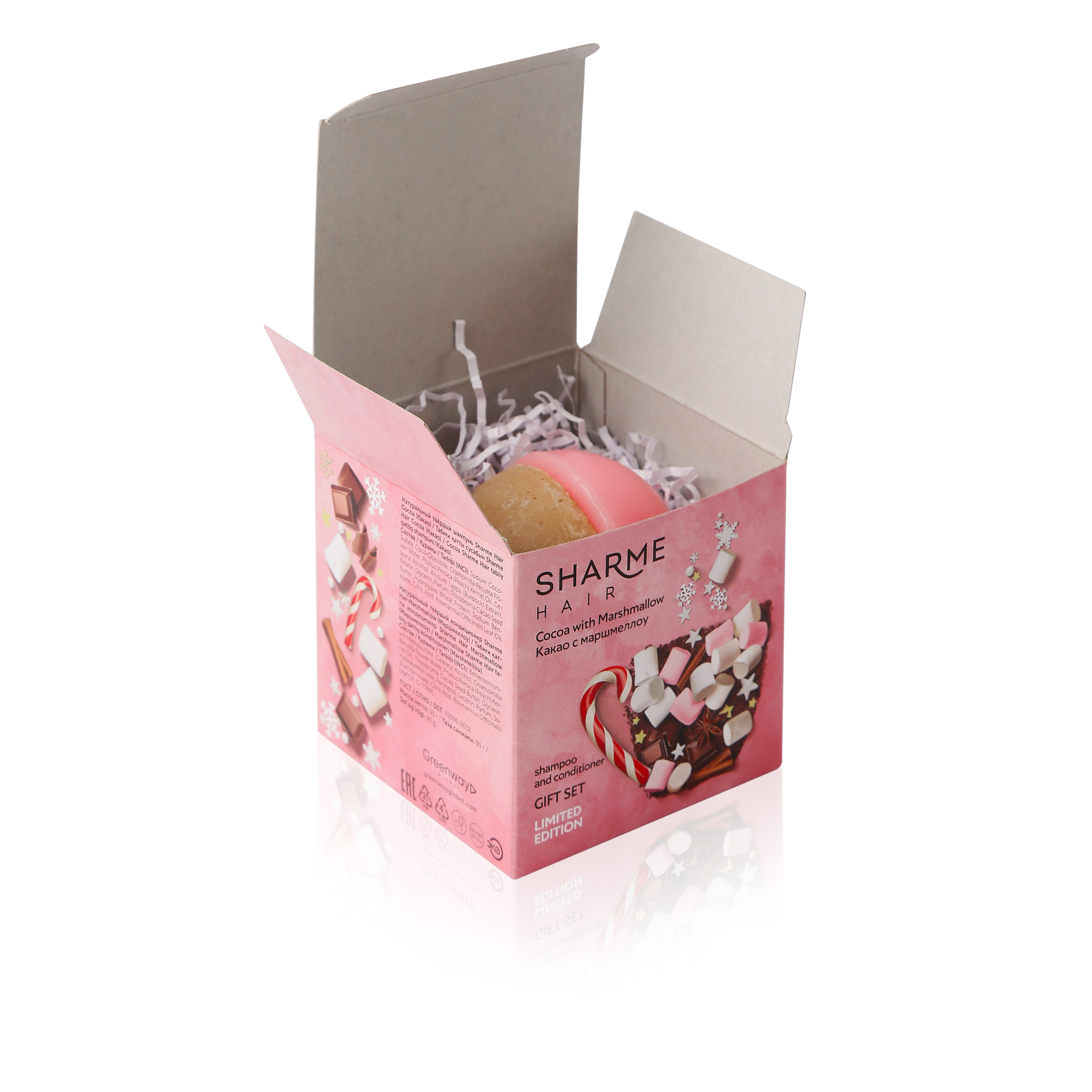 Благодаря натуральному составу подарочный набор Какао с маршмэллоу бережно и комплексно ухаживает за волосами, наполняя процесс невероятно приятным ароматом горячего какао с маршмэллоу.
